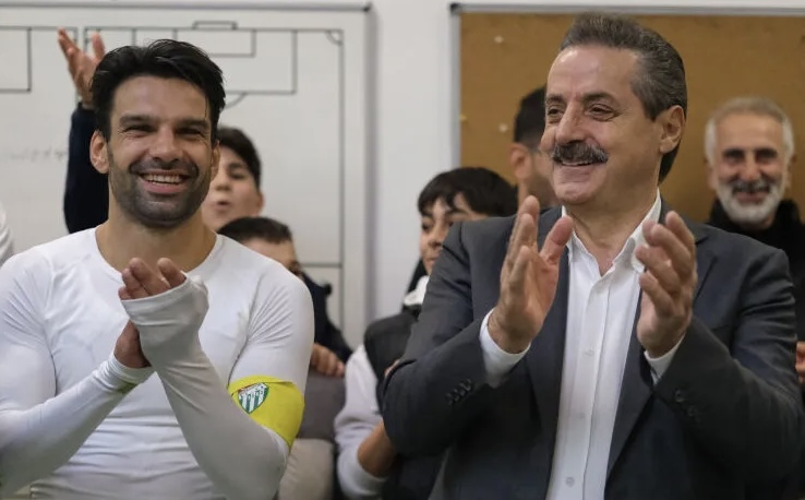 Bursaspor’un sahasında Kuşadasıspor’u 4-1 mağlup ettiği maçın ardından kutlamalara sürpriz bir isim de dahil oldu.