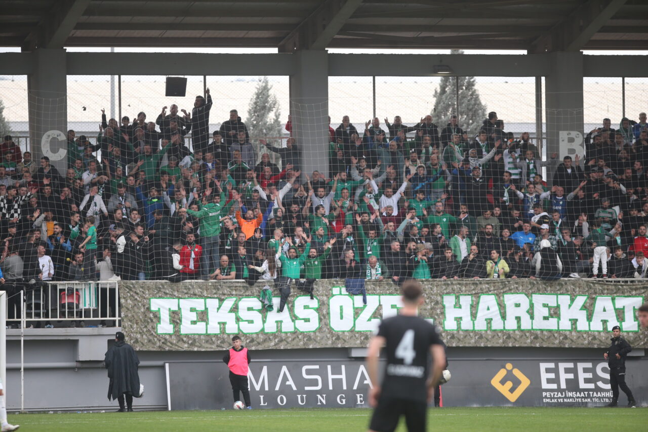 Deplasman tribünün yanı sıra ev sahibi takım tribünlerinde de görünen yaklaşık bin dolayındaki yeşil beyaz sevdalıları takımlarına büyük destek verirken, yaptıkları tezahüratlarla galibiyette önemli rol oyarken, futbolcular maçın ardından 3 puanı taraftarlarla birlikte kutladı.