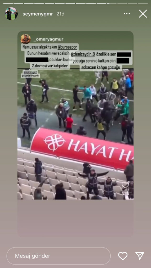 Amedspor altyapısında yetişen ve Bursaspor‘un bugün karşılaştığı Diyarbekirspor‘da forma giyen Seymen Yağmur, son bölümü gergin geçen karşılaşmanın ardından yaptığı paylaşımla haddini aştı.