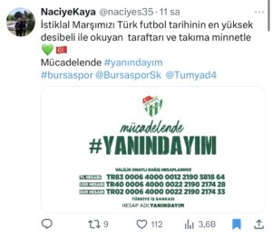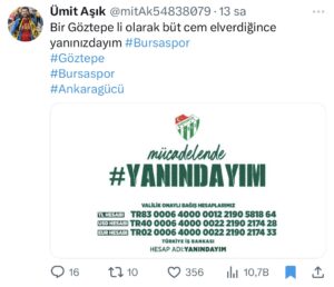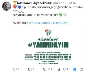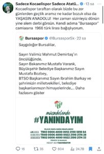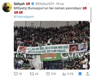 Ayrıca sosyal medyada çok takipçili milliyetçi hesapların da Bursaspor’a destek olunması konusunda çağrılarda bulundu.
