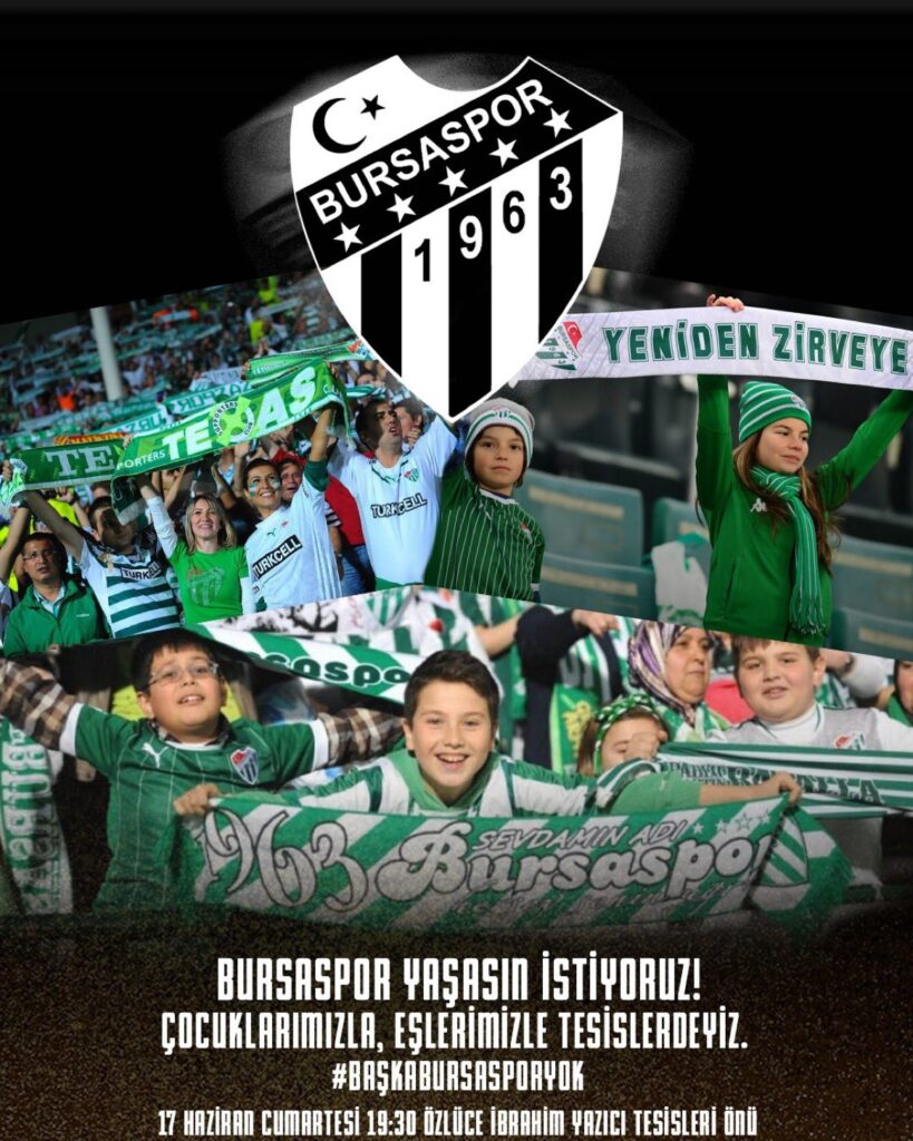Bursasporlu taraftarlar sosyal medya hesaplarından #BaşkaBursasporYok hastagi ile cumartesi günü yapılacak etkinlik için organize oluyor.