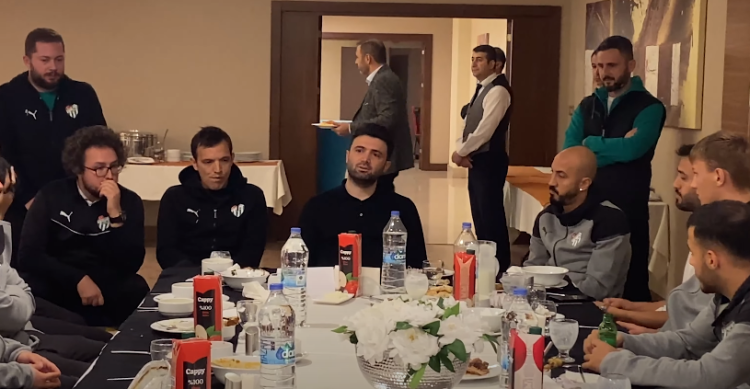 Bursaspor Başkanı Enes Çelik, Elazığ deplasmanında teknik heyet ve futbolcularla toplantı yaptı. Toplantının görüntüleri Bursaspor Youtube'da yayınlandı