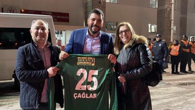 Çağlar’ın babası Emrullah Akbaba ile Çağlar’ın annesi maçın ardından Bursaspor Kulübü eski yönetim kurulu üyesi Hakan Dinçtürk ile birlikte poz…