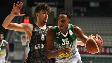 Karşılıklı basketlerle başlayan maçta Kadji ve Can Maxim Mutaf ile etkili olan Bursaspor, 4. dakikayı 7-5 üstün geçti. Olaseni‘nin boyalı…