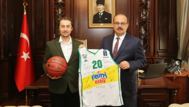 Vali Yardımcısı Halil Serdar Cevheroğlu, Bursaspor Frutti Extra Basketbol Takımı Yönetim Kurulu Başkanı Sezer Sezgin ve İş İnsanı Levent Topaç,…