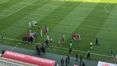 Saha kenarından taç kullanılacağı esnada yedek kulübesinden atılan laflar ve Ahmet Yıldırım‘ın Hasan Ayaroğlu‘nun boğazını sıkmasının ardından ortam gerilirken hakemin…
