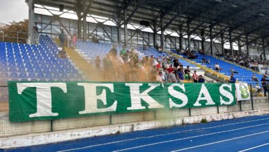 Dumlupınar Stadı’nda oynanan maçta gelerek takıma destek vererek tezahüratlar yapan Bursasporlu taraftarlar tribünlerde Teksas pankartını da astı.