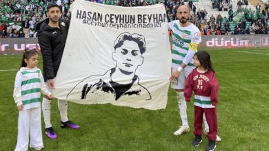 Bursaspor’un 2-0 kazandığı Ergene Velimeşespor maçının ardından Tahir Babaoğlu ile Ahmet İlhan Özek, Hasan Ceyhun Beyhan pankartı açtı.