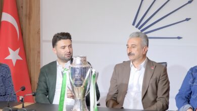 Bursaspor Kulübü Başkanı Enes Çelik ve yönetim kurulu üyeleri, şampiyonluk kupasıyla birlikte CHP İl Başkanı Nihat Yeşiltaş’ı ziyaret etti.