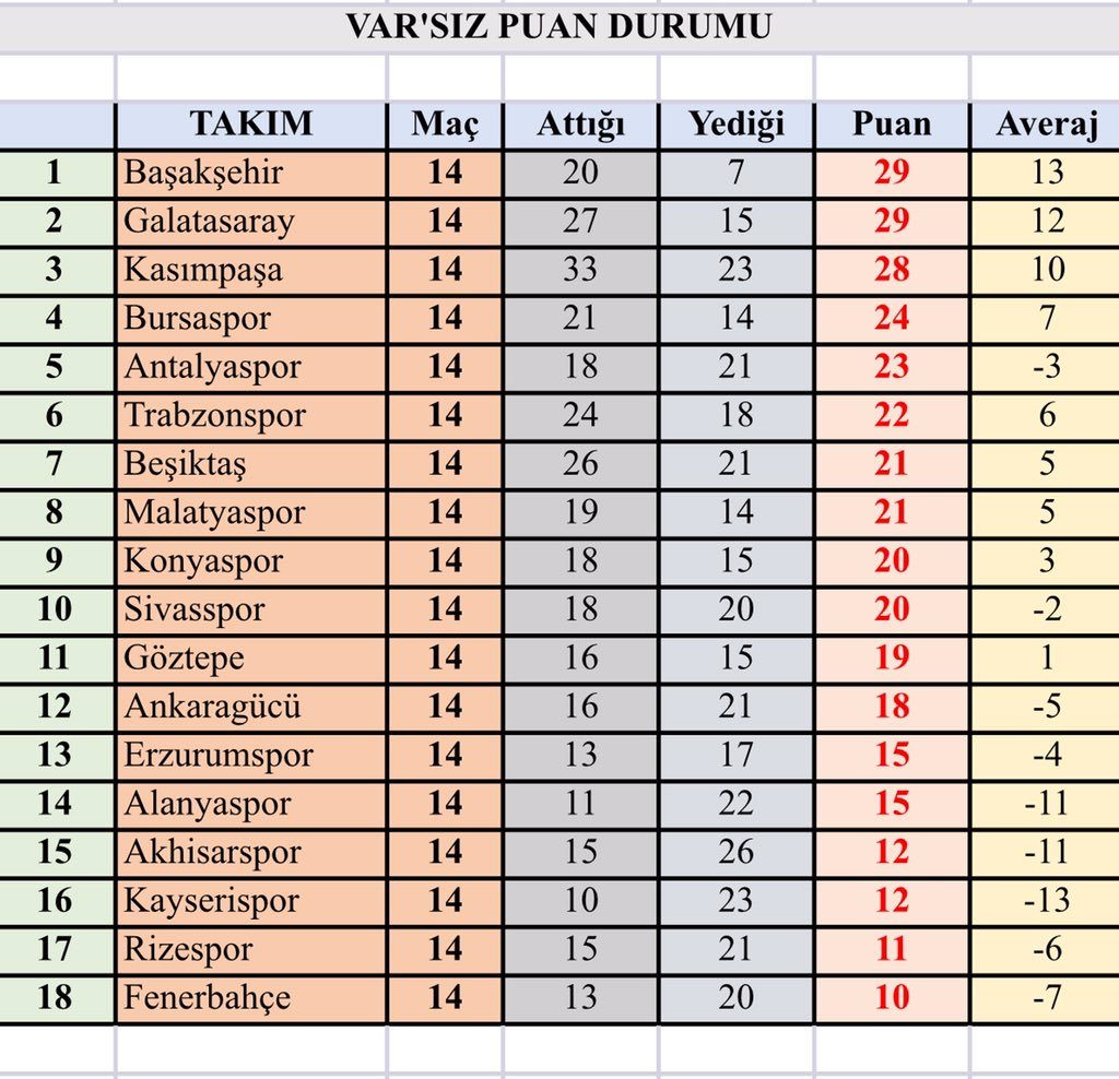 Eğer VAR olmasaydı Bursaspor ve Galatasaray‘ın 5 puan daha fazlası olacaktı. Deniz Çoban‘ın VAR‘sız hesapladığı puan durumuna göre Bursaspor 4. sırada bulunuyor!