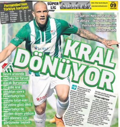 Savunmaya ve orta sahaya yaptığı flaş transferlerle kadrosunu güçlendiren Bursaspor, forvete ise taraftarın beklediği takviyeyi yapamamıştı. Yeşil-Beyazlılar, Stancu ve Kubilay’dan hucüm hattının en ucu için istediği verimi alamayınca forvet arayışları şimdiden başladı.