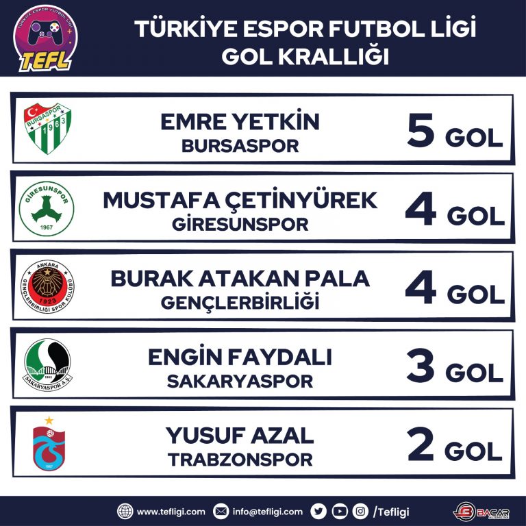 Şu an Gol krallığı sıralamasında 1.sırda bulunan oyuncumuz Emre YETKİN gerek kişiliği gerekse yeteneği ile bulunduğumuz platformun en kaliteli forvetlerinden biridir. Tabi ki futbolun takım oyunu olduğunu unutmamak lazım kulübümüz oyuncularının hepsi mevkilerinde kendini kanıtlamış oyunculardır.