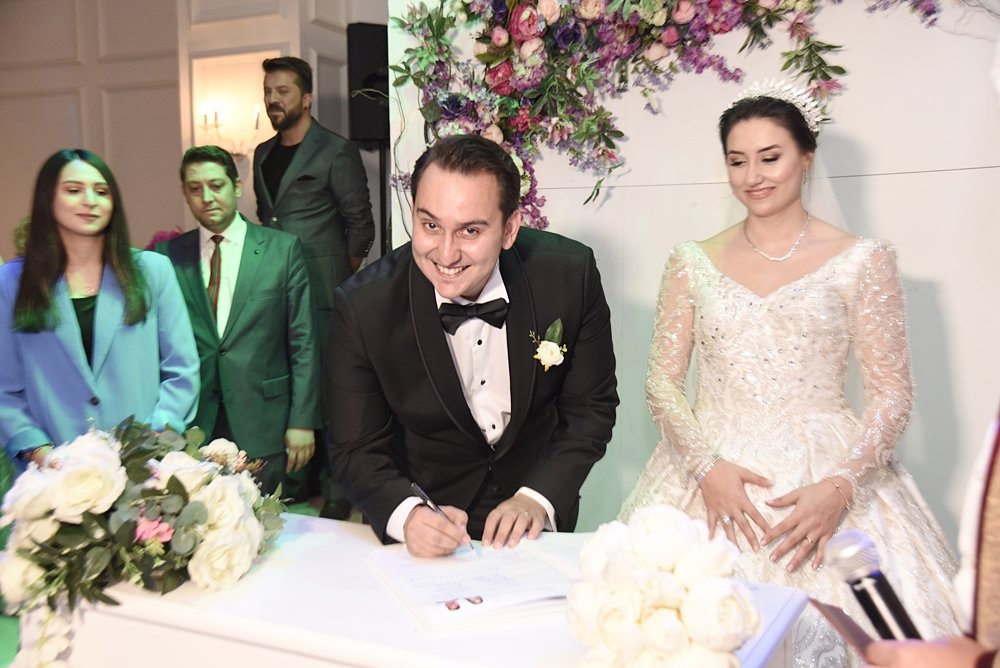 Ömürlük imzaları atan Fazıl Bartu Kösemsever ve Elif Açıkgöz çiftinin mutlulukları gözlerinden okunuyordu.