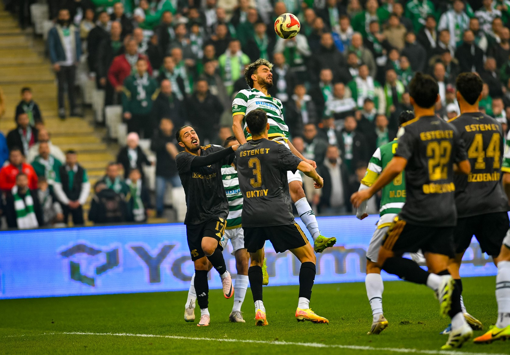 38′ Yeşil-beyazlılar bir kez daha gole yaklaştı. Hakkı Türker’in sağ kanattan yaptığı ortada Aliağa savunması topu uzaklaştırdı. Ceza yayı önünde topla buluşan Musa Çağıran’ın sert ve düzgün vuruşunu kaleci Ahmet Pekgöz, 90’a uzanarak kornere çeldi.
