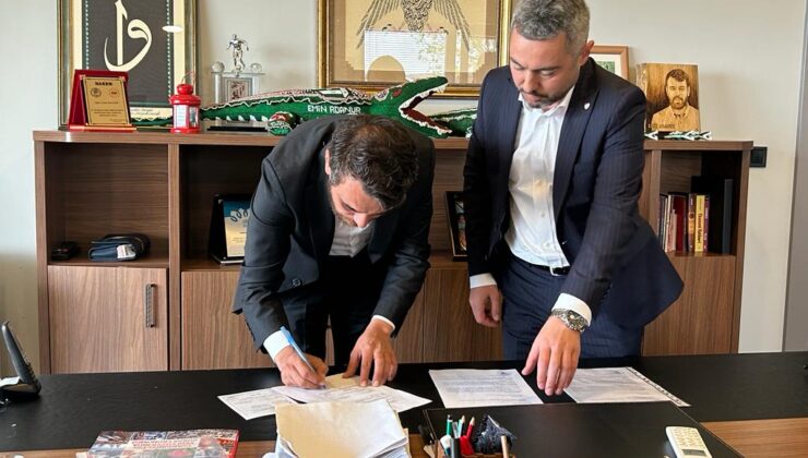 Emin Adanur’un Atatürk Kent Ormanı’ndaki ofisinde gerçekleşen ziyarette Bursaspor Başkanı Ömer Furkan Banaz’ın yanı sıra Futbol Şube Sorumlusu Mehmet Zahit Yanar, Asbaşkanlardan Rıdvan Gültekin, yönetim kurulu üyelerinden Selim Yolgeçen, Ramazan Çetinkaya, Semih Şevik, Metin Alp ve Kulüp Genel Müdürü Nihal Ferik bulundu.