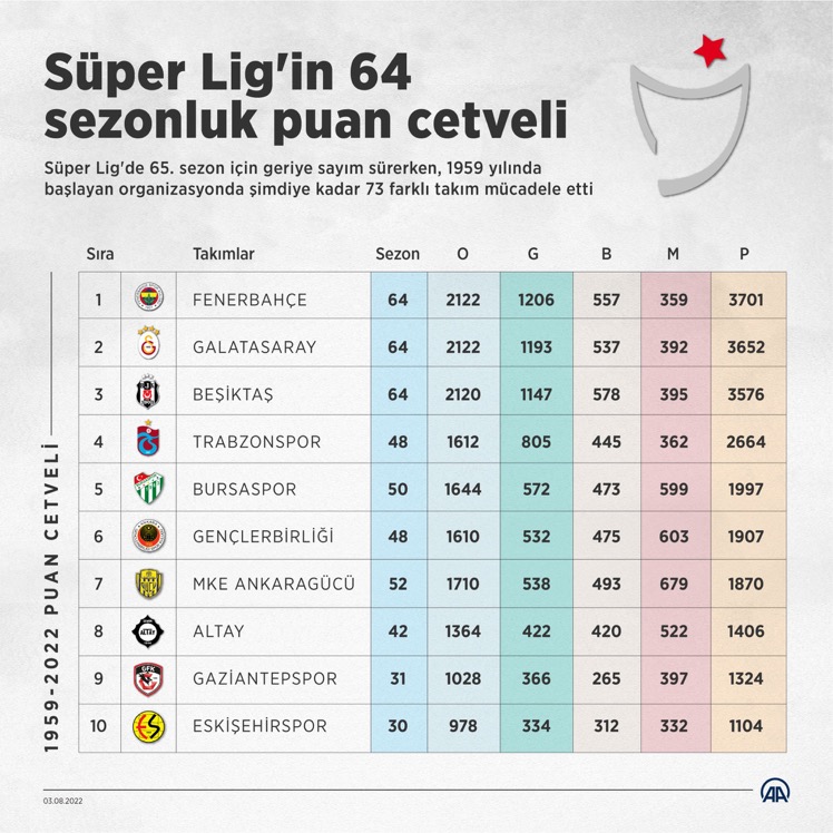 Bu hem bizim ne kadar büyük bir klüp olduğumuzu hem de Türk futbolunun ne kadar kalitesiz olduğunu gösterir.Biz ve bizden sonraki klüplerin neredeyse hepsi alt liglerde ve yok olanlar var.Bazıları anadolu yok olsun istanbul takımları beraber oynasın istiyor.İşin acı tarafı emellerine ulaşıyorlar.Yazık çok yazık hem bize hem Türk futboluna…