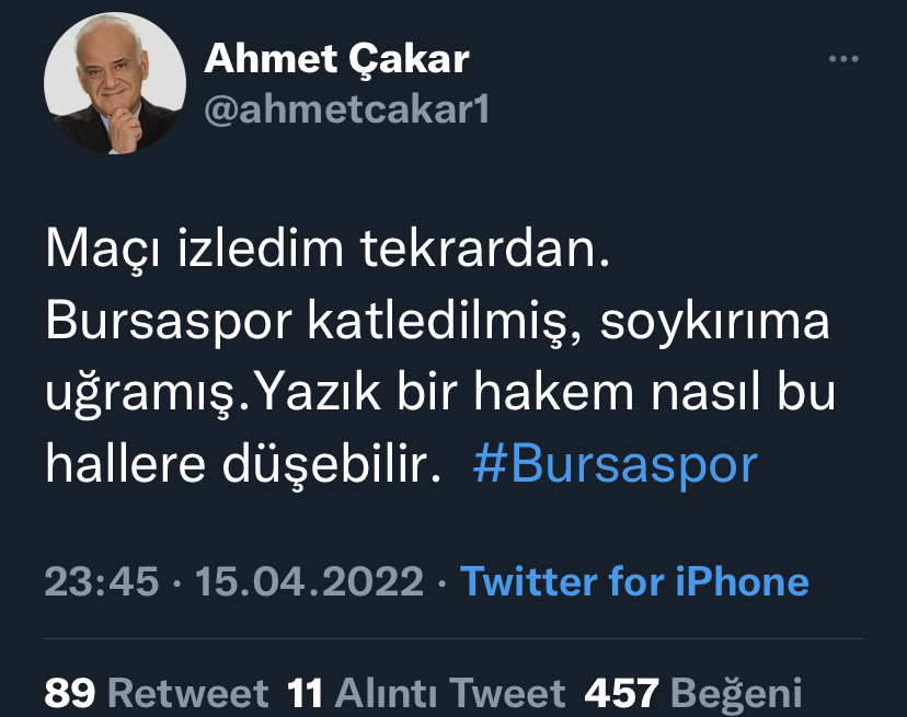 Ben Bursasporluyum kardeşim. Şunu da söyleyeyim aynı pozisyon bizim kalede olsaydı. Deniz ayaklarını topluyor yere oyuncu kendini yere atıyor derdiniz. Daha önce dediniz çünkü biliyorum.