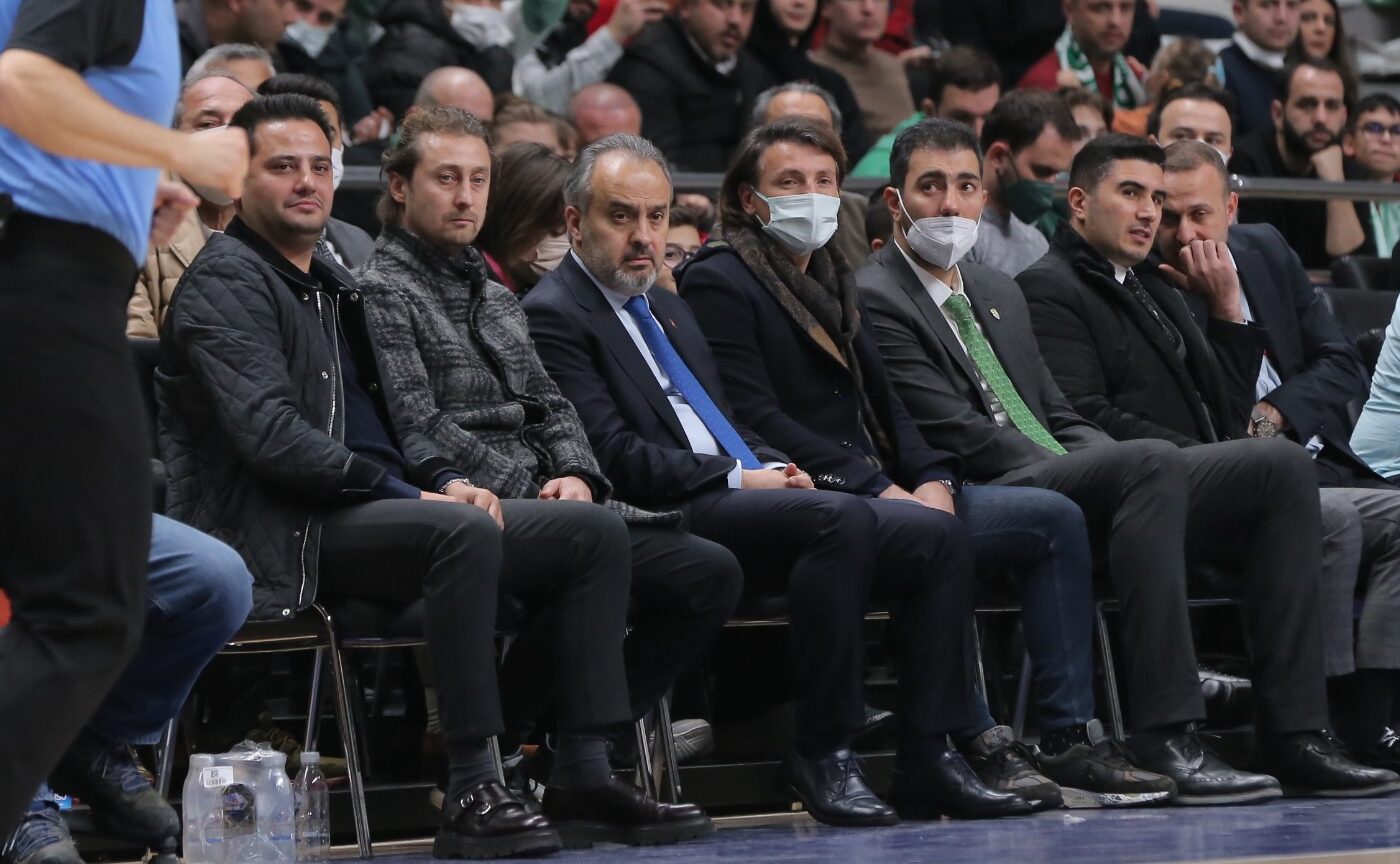 Frutti Extra Bursaspor‘un Eurocup 14. hafta mücadelesinde karşılaştığı Promitheas Petras maçına Bursa Büyükşehir Belediye Başkanı Alinur Aktaş ve Bursaspor Teknik Direktörü Tamer Tuna, Frutti Extra Bursaspor Yönetim Kurulu Başkanı Sezer Sezgin ve Genel Menajer Nedim Yücel ile birlikte takip etti.
