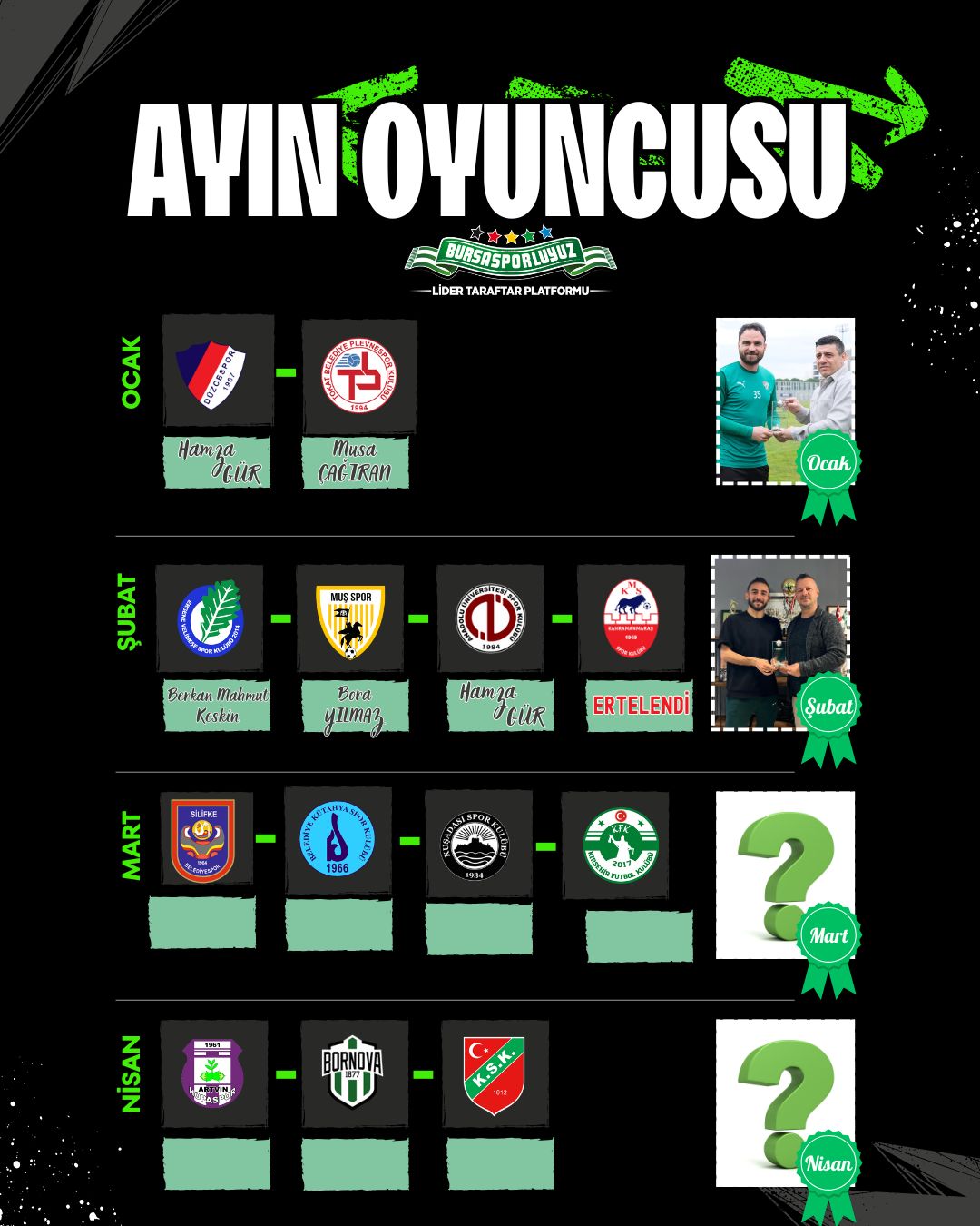 Bursasporluyuz.Org kullanıcılarının oylarıyla Şubat ayında oynanan karşılaşmalarda “Maçın Adamı” seçilen isimler arasından “Şubat ayının en değerli futbolcusu” belirlendi.
