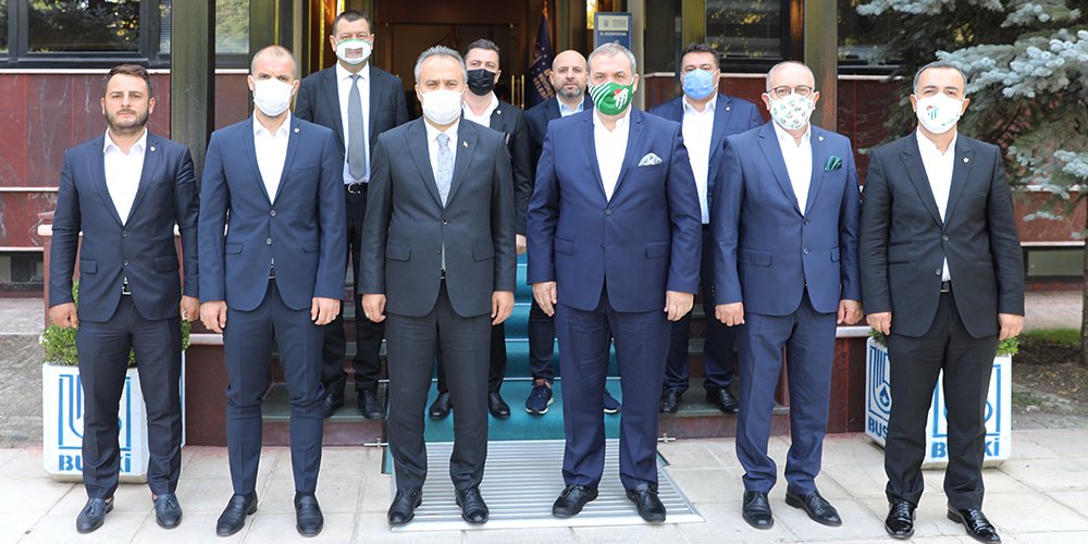 Erkan Kamat da yaptığı konuşmada “ Sayın Başkanım kulüpte bizi ilk ziyaret eden kişiydi ve biz de yönetim kurulu arkadaşlarımla ve hocamız Mustafa Er ile birlikte kendisini iade-i ziyarette bulunmak istedik. Önümüzdeki zamanda yapmamız gereken bazı önemli konular var onları aktardık. Sağolsun biz Bursaspor’un ne şekilde yanında olmamız gerekirse biz de sizin gibi sorumluluk alıp o fedakarlığı  yapabiliriz dedi. Önümüzdeki süreçte güzel şeylerin olacağının müjdesini verebiliriz” ifadelerini kullandı.