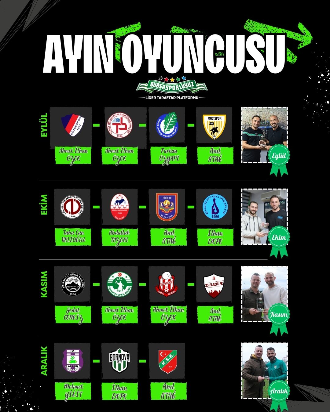 Bursasporluyuz.Org kullanıcılarının oylarıyla Aralık ayında oynanan 3 karşılaşmada “Maçın Adamı” seçilen isimler arasından “Aralık ayının en değerli futbolcusu” belirlendi.