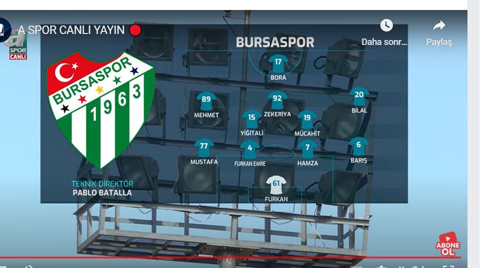 Karşılaşma öncesi iki takımın 11lerini ekrana getiren yayıncı kuruluş ASpor, Bursaspor kadro dizilişini tamamen hatalı ekrana getirdi.