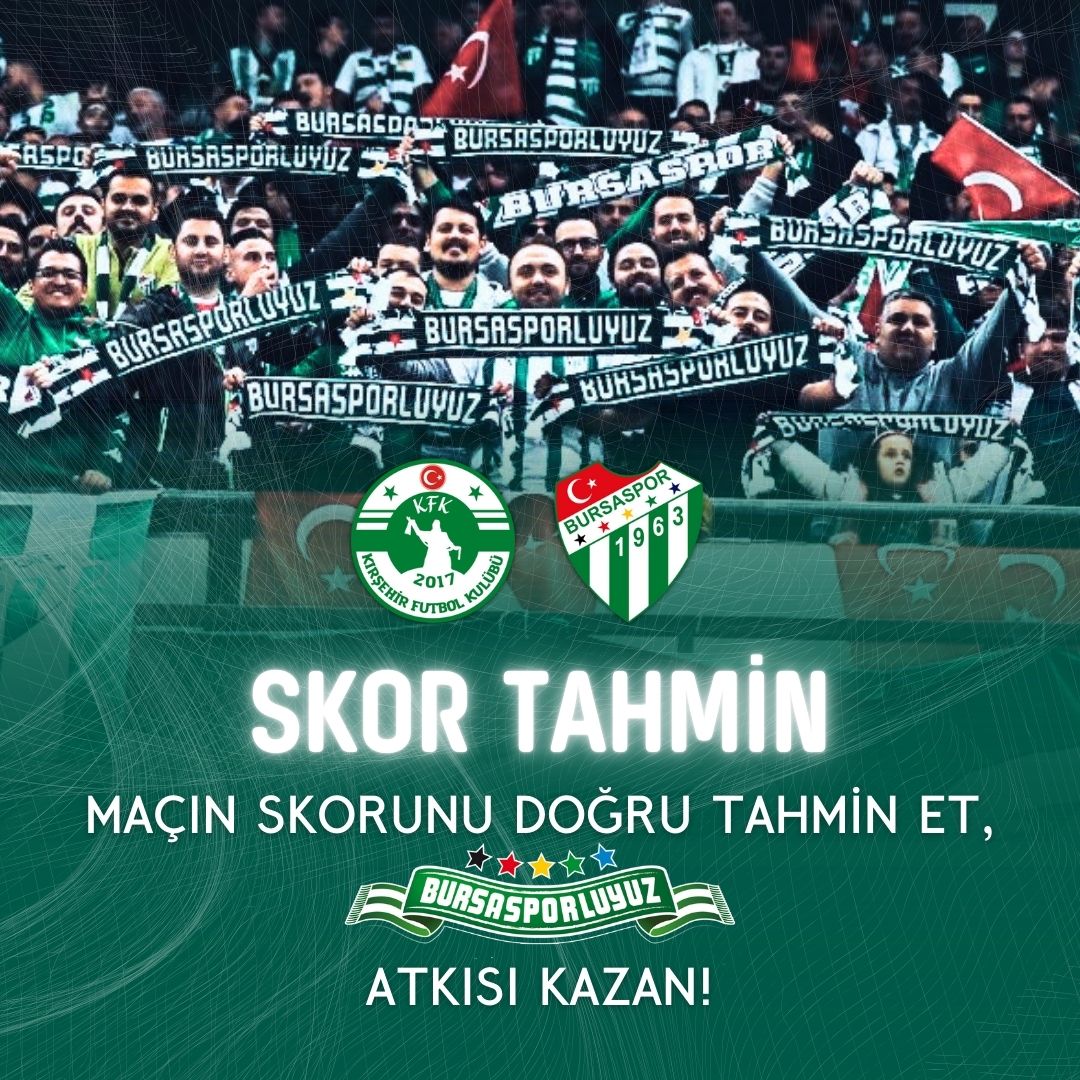 Bursaspor’umuzun Kırşehir FSK ile deplasmanda karşılaşacağı mücadelenin skorunu doğru tahmin eden 2 takipçimize, Bursasporluyuz.org 18. Yıl Hatırası Logo Atkısı hediye ediyoruz.