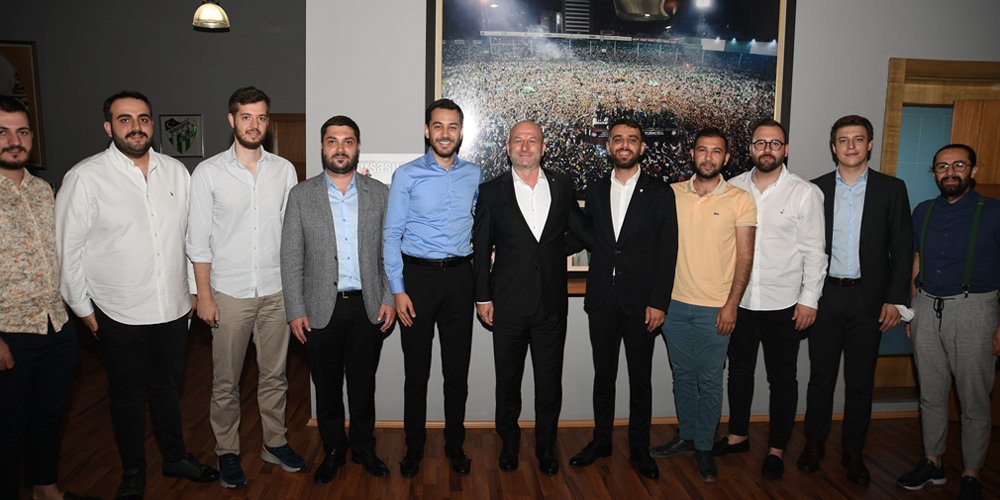 Bursasporlu Sanayici ve İş Adamları Derneği Yönetim Kurulu Başkanı Enes Can Demir ve Yönetim Kurulu Üyeleri Yunus Tan, Kıvanç Cakalıoğlu, Abdülkerim Demir, Mahmut Kemal Bilgin, Burakhan Kutlucan, Alihan Barışcı, Emre Şankaya ve Emre Planalı, Yönetim Kurulumuza hayırlı olsun ziyaretinde bulundu.
