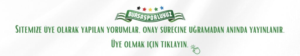 Baba oğlu kardeşim çok çalış yılma BURSASPOR Diğer kulüplere benzemez RABBİM Sakatlık hastalık vermesin işini en iyi şekilde yap inan bana yeniden doğdum dersin Yaşadığını hissedersin gençleşirsin sahaya çıktığında tüylerin diken diken olur sen sadece sahaya çık topunu oyna farklılığı farklı bir şekilde anlayacaksın zaten senin adına da BURSASPOR Adına da hayırlı uğurlu olsun vurduğun gol olsun hoş geldin