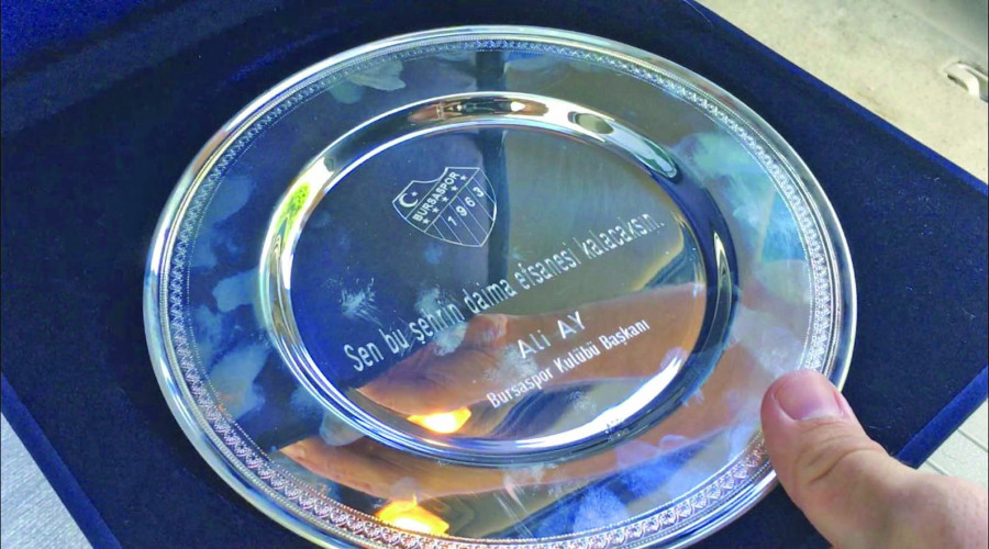Batalla Başkan Ali Ay’ın kendisine verdiği plaketi özenle paketledi.