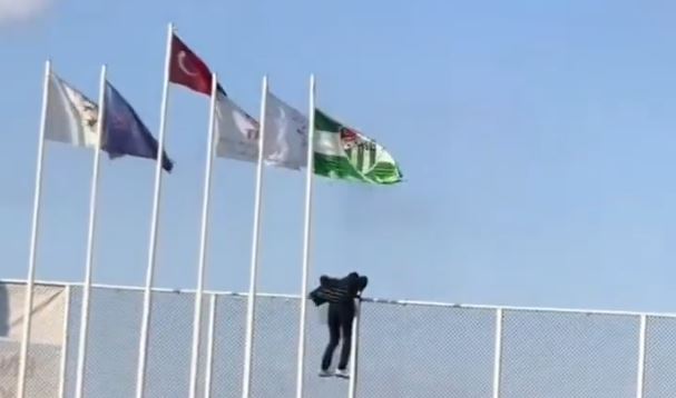 Bayrağımızı indirme cüretini göstermekle kalmayıp bu görüntüleri sosyal medya hesaplarında "Herşey A*edspor, V*nspor için" notuyla paylaştılar.