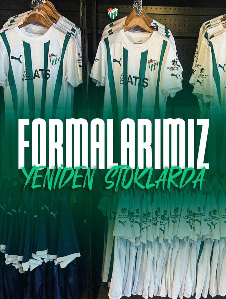 Bursaspor Kulübü‘nün resmi sosyal medya hesaplarından “Formalarımız yeniden stoklarda!” paylaşımda bulundu.