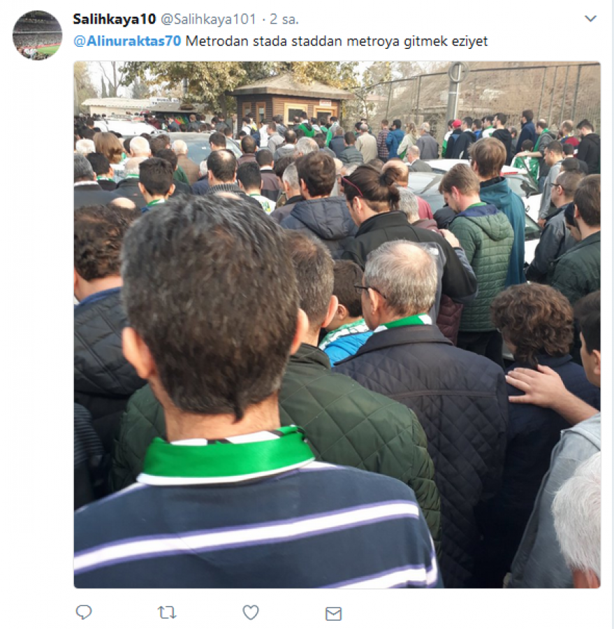 8. Taraftarın bulduğu çözüm önerisi; Staddan çıkıp Paşa çiftliği metro istasyonuna yürüyorum, oradan Nilüfer istikametine giden metroya binip nilüfer istasyonunda inip, Osmangazi istasyonuna giden diğer metroya biniyorum tabi bu taktiği duyan herkes bunu yapmaya başlamış, bakalım kar kıyamette ne yapacağız