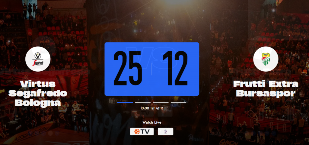 Final maçının ilk sayısını bulan takım David Dudzunski ile Frutti Extra Bursaspor oldu. Bologna ise Milos Teodosic‘in 3 sayılık basketi ile yeşil-beyazlılara cevap verdi. İlk dakikalarda Milos Teodosic ile skoru elinde tutan Virtus Bologna’ya karşı Bursaspor‘da Derek Needham ve Kavarrius Hayes karşılık veren isimler oldu. İlk çeyrekte İtalyan ekibi hücum ribauntlarını da alarak kolay sayılar bulurken Bursaspor ribauntlarda ve faul konusunda sıkıntı yaşadı. Mücadelenin ilk çeyreğini ev sahibi Bologna 25-12 önde kapattı. Maçın ilk çeyreğini Derek Needham ve Kavarrius Hayes iki faul alarak tamamlaması Bursaspor açısından problem yaratan durum oldu.