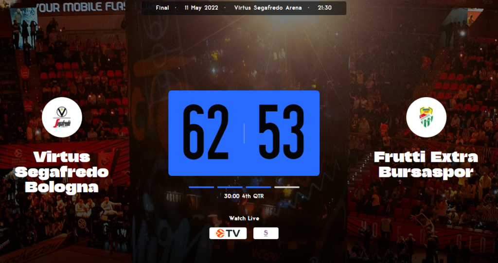 Son çeyreğe ev sahibi Jaiteh‘in sayısı ile başlarken Bursaspor‘da Dudzunski, Needham ve Onuralp ile üst süte sayılar geldi ve fark 5 sayıya düştü 64-59. Bursaspor son 6 dakikaya 10 sayı geride girdi. Jatieh ve Shengelia‘nın sayılarına Bursaspor‘da Dudzunski, ile Hayes cevap verdi. Mücadelenin son anlarını iyi oynayan Virtus Bologna maçı kazanarak Eurocup şampiyonu oldu. Bursaspor’u bizlere yaşattığı guru için tebrik ediyoruz.