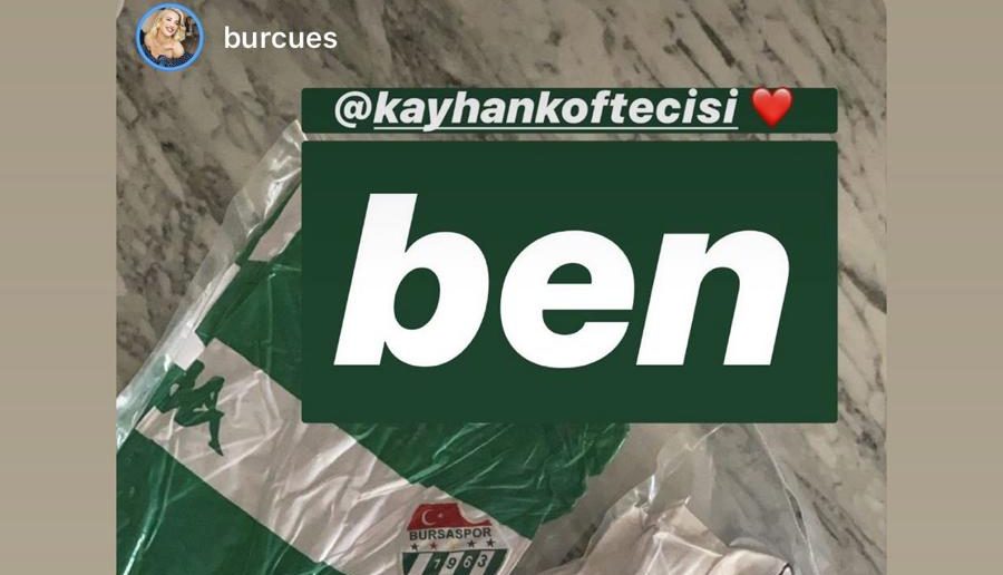 Kayhan Köftecisi‘ni Instagram hesabından mentionlayan Burcu Esmersoy, Ceyhun Yaman‘ın Bursaspor forması hediyesini de paylaştı.
