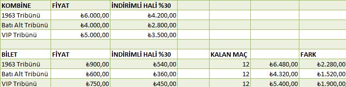 Tamam hep destek tam destek de, bunları yazanlar olunca tepkiler geliyor. Demekki bizim dışımızda sadece 247 kişi kombine aldı. ÇOK AYIP- ÇOK YAZIK. Kongre Üyesi olduğum kulübe çağrım. Lütfen bu işi kolaylaştırın- zorlaştırmayın. Mesele sadece para değil.