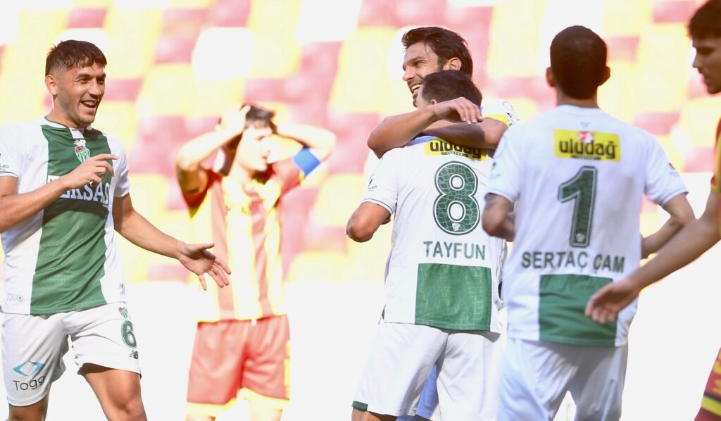 Bursaspor rakibi karşısında oyunu domine ederken rakibini erken bulduğu gollerle çökertti. ilk yarıyı Ertuğrul Ersoy (2) ve Tayfun Aydoğan‘ın golleriyle 3-0 önde kapattı.