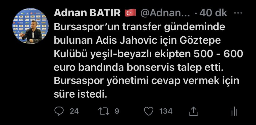 Bursaspor'un transfer listesinde bulunan Adis Jahovic için Göztepe Kulübü’nden cevap geldi.