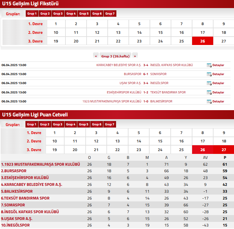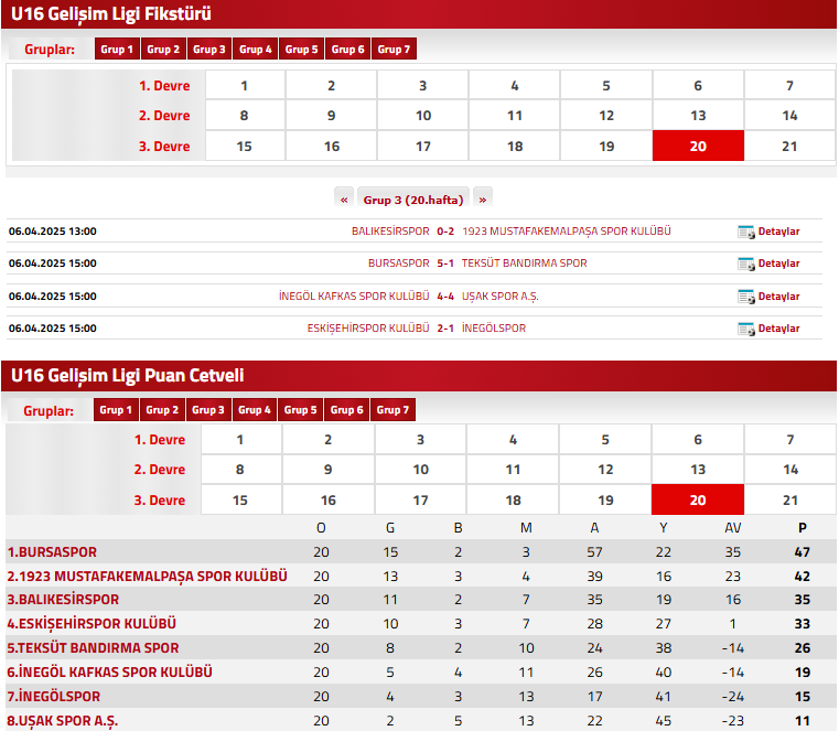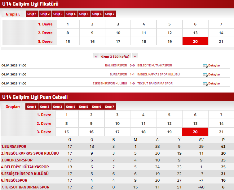 Bursaspor U17 Takımının kalan 7 haftada ligde oynayacağı maçlar ise şöyle;