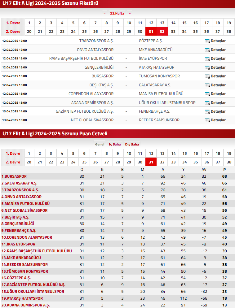 U17 Elit A Ligi 2024-2025 Sezonunda oldukça güçlü rakiplerle mücadele eden Bursaspor U17 Takımı ligde Galatasaray ve Trabzonspor ile şampiyonluk yarışı veriyor.