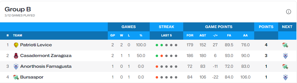 Bursaspor Basketbol sonraki maçını ise 23 Ekim Çarşamba günü Patrioti Levice ile deplasmanda oynayacak.