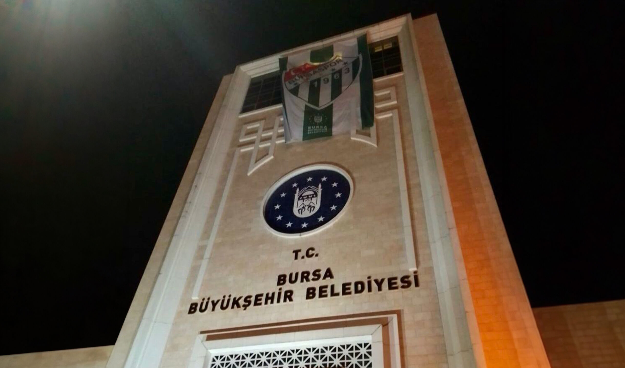 Ankara yolu üzerindeki Büyükşehir Belediye binasına bu akşam Bursaspor bayrağı asıldı.