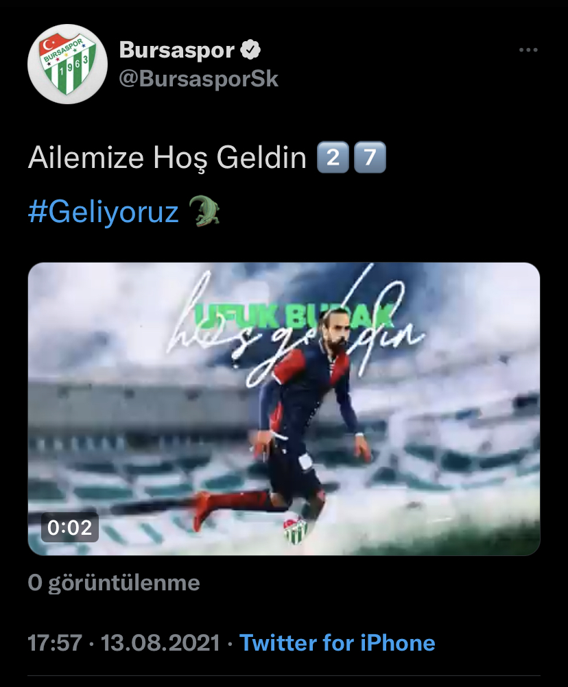 Hayırlı olsun Büyük Bursaspor Camiasına hoşgeldin Lig+olası playoff+kupa 40-45 ort. müsabaka da Kadro derinligi açısından Faydalı olur diye umuyorum 👏👏