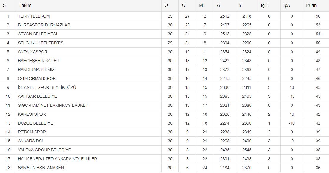 Bursaspor Durmazlar: Can Özcan 14 (xxx), Erdem İlter 7 (xxx), Metehan Akyel 5(xxx), Karlo Vragoviç 13 (xxxx), Dejan Borovnijak 24 (xxxx), Erbil Eroğlu 9 (xxx), Gurur Baybora 6 (xxx), Tuğberk Gedikli 4(xxx), Mustafa Baki Görür 8 (xxx), Ali Işık 3(xxx)