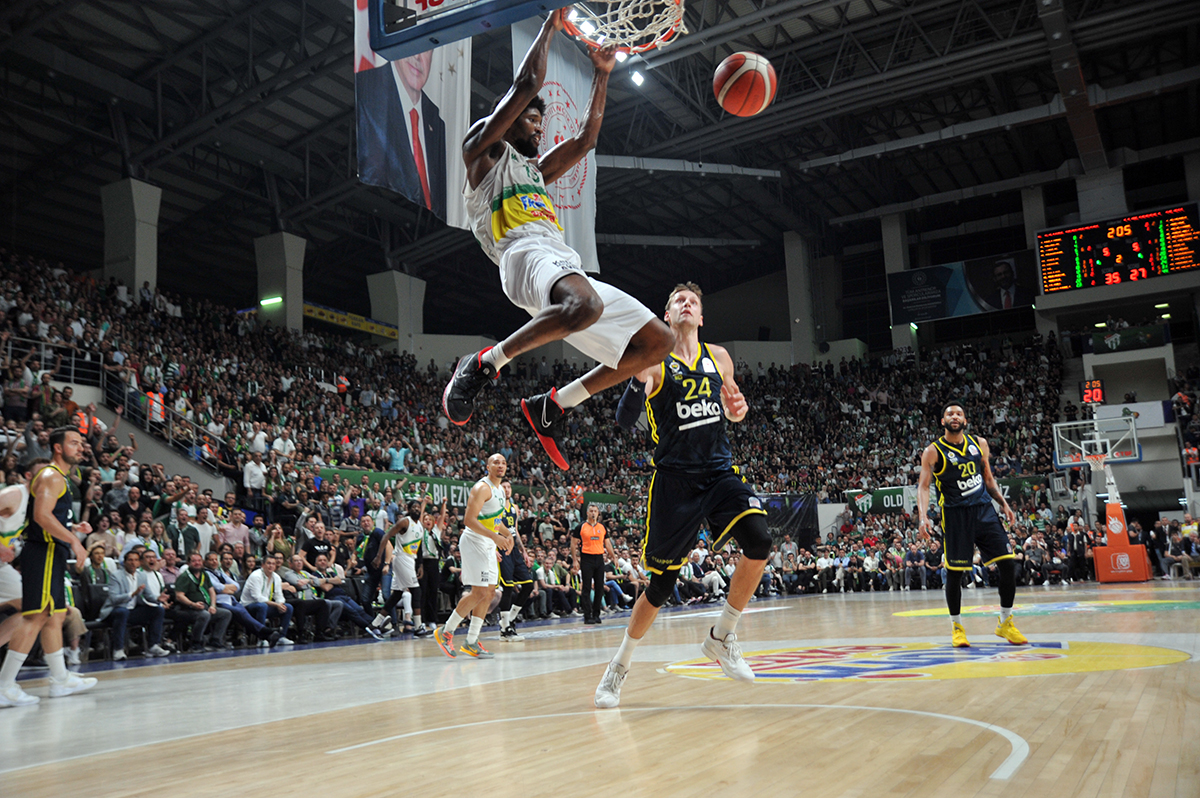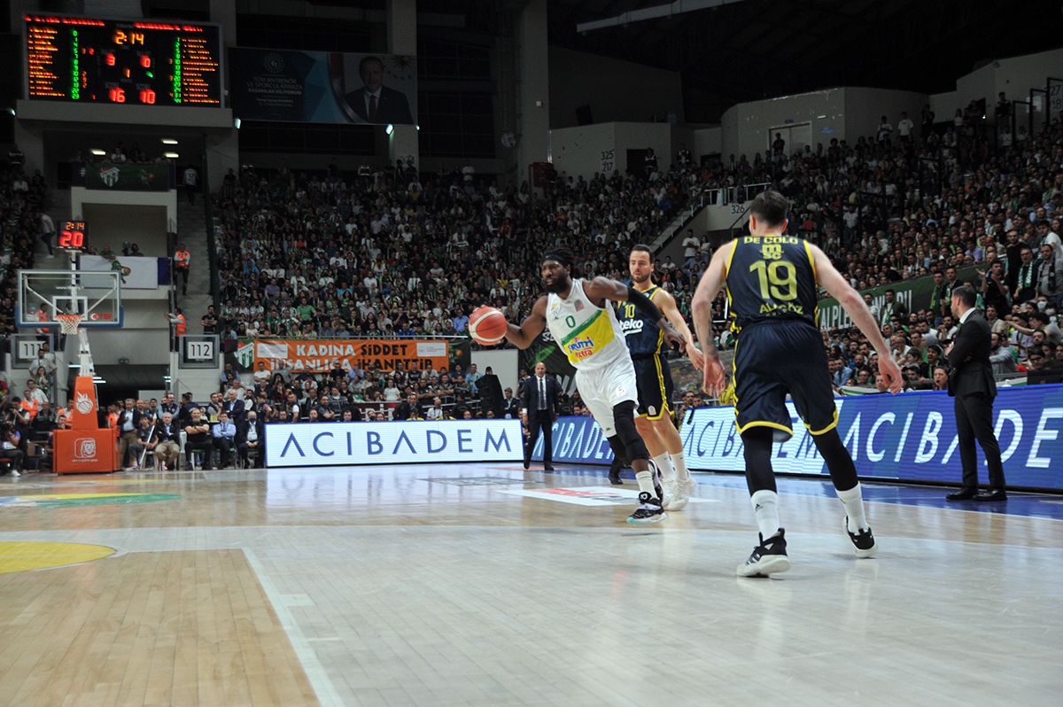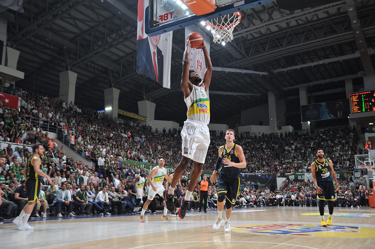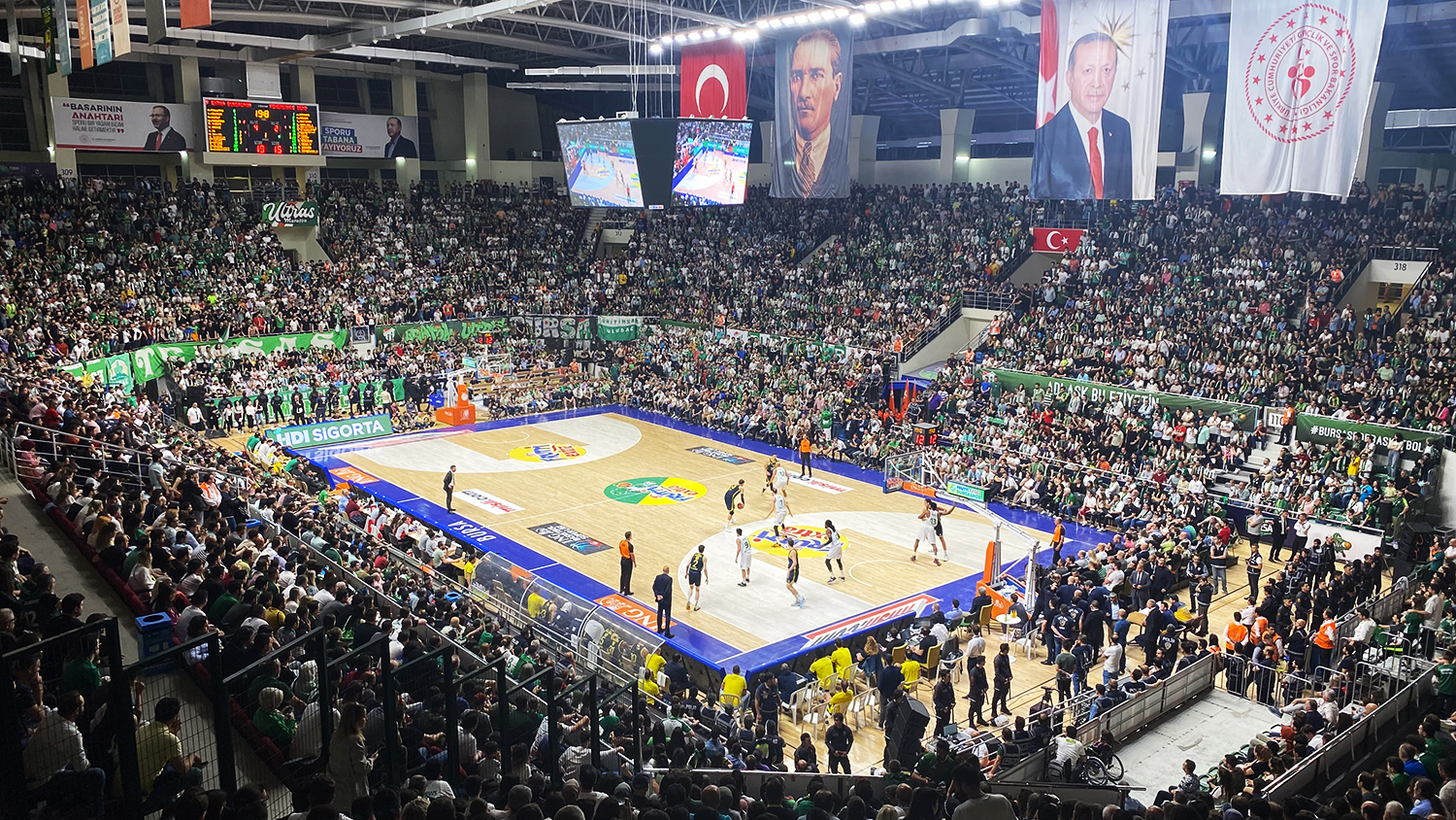 Frutti Extra Bursaspor'un Fenerbahçe Beko ile oynadığı ING Basketbol Süper Ligi play-off çeyrek final rövanş maçında Bursasporlu taraftarlar Nilüfer Tofaş Spor Salonu'nu hınca hınç doldurdu.