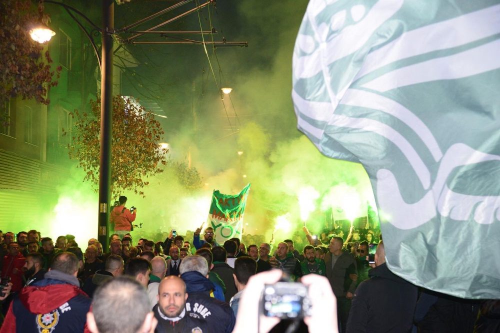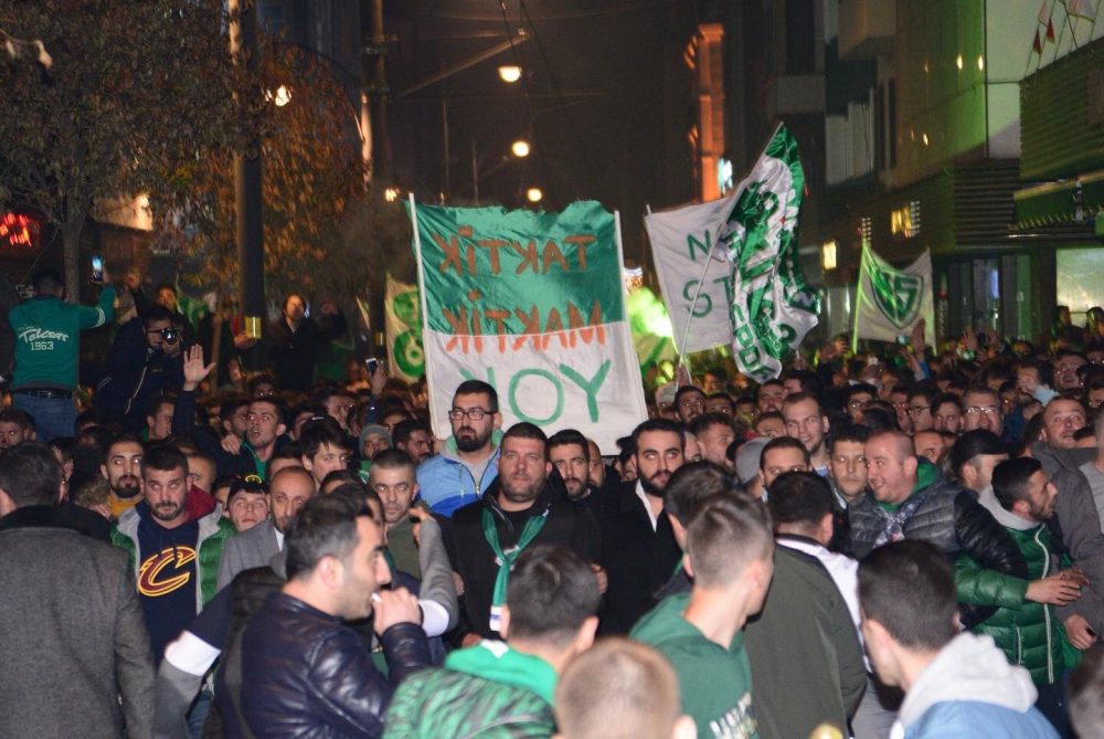 Kayhanda bulunan eski Tekel Binası önünde toplanan Bursasporlu taraftar Şehri Müdafa yürüyüşü yaptı.