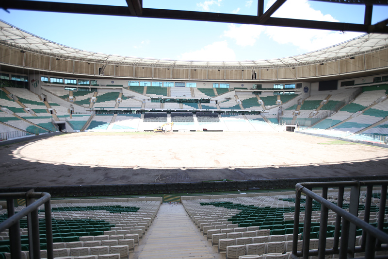 Stadyum fotoğrafları ne kadar bakımsız kaldığını gösteriyor yani çatı panelleri adeta kahverengine dönmüş yani senede 1 sefer iyi bir şekilde temizlense silinse yıkansa bu hale gelmezdi bu tesis yol kenarında olduğu için senede bir kere temizlenmesi gerekir bırakılırsa böyle çok pahalı olan yeniden boyanması gerekecek halbuki senede 1 kez paslanan yerler temizlenip boyansa 10-15 sene idare edilirdi koltuklar eski halini alması için ısı yöntemi var her iki senede yapılması gerekirdi senelerdir timsah kafası aşağı timsah kafası yukarı para mara derken koca tesis kötü duruma düşmüş!