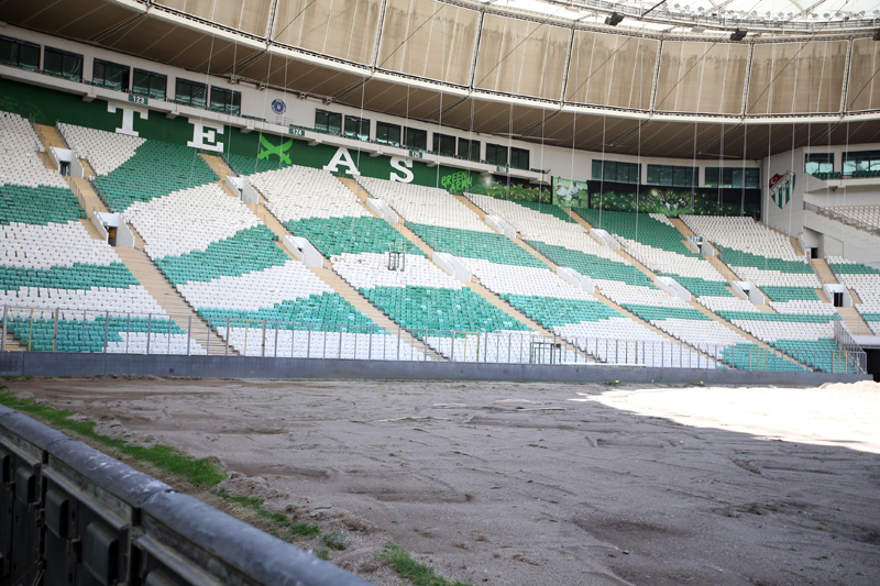17 Ocak 2016’daki Trabzonspor maçıyla birlikte kapılarını açan ve Bursaspor’un iç saha maçlarına ev sahipliği yapan Yüzüncü Yıl Atatürk Stadyumu yeni sezonda bambaşka bir görünüme kavuşacak. Açıldığı günden bu yana gerek zemini, gerek tribünleri, gerekse taraftar alanlarındaki sorunlar nedeniyle eleştirilen stadyumda zemin yenileme çalışmaları tüm hızıyla sürüyor.
