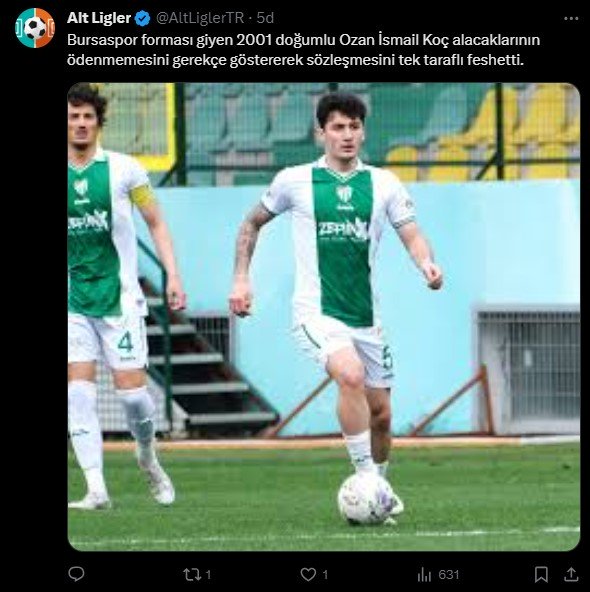 Bursaspor forması giyen 2001 doğumlu Ozan İsmail Koç'un alacaklarının ödenmemesini gerekçe göstererek sözleşmesini tek taraflı feshettiği iddia edildi.